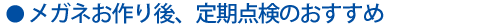 - メガネは正しい取扱をしていても使っているうちにネジがゆるんだり、フレームに歪みや傷みが生じ、かけ具合が悪くなる場合があります。